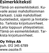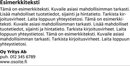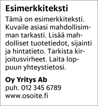 Esimerkki-ilmoituksen koko 47 x 66 mm