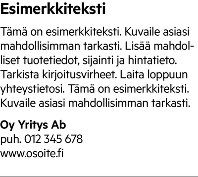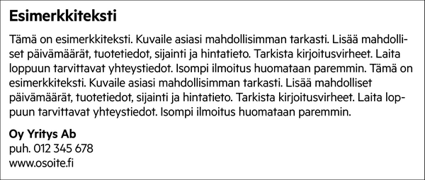 Valitse ilmoituksesi malli alla olevista vaihtoehdoista.
