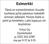 Toimitetaan myöhemmin aineistotuotantoa varten
